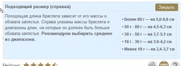 Походящая длина браслета зависит от его массы и обхвата запястья. Справа указаны массы браслета и диапазоны длин, на которые он должен быть больше обхвата запястья.- Более 80 г — на 5,0-6,6 см