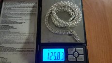 Полновесная цепочка.На фото изображена серебряная цепь Рамзес массой 120 грамм и длиной 60 см с замком "Коробочка и головы змей".